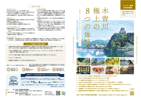 販売予定料金の半額でお楽しみいただける、モニター体験プログラム『木曽川 極上の8つの体験』を開催いたします。