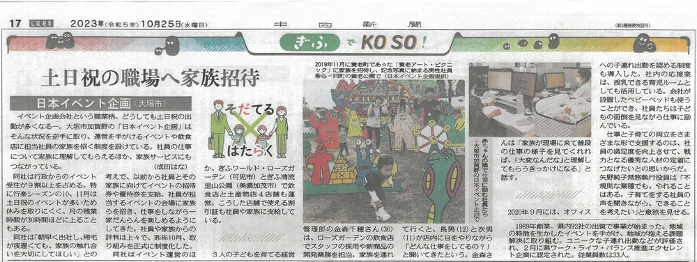 中日新聞朝刊岐阜県版「ぎふでKOSO!」に紹介されました。