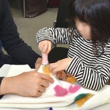 ワタや毛糸ニードルパンチして模様つけをしたコースターを作ろう!